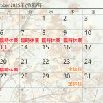 いつもご利用ありがとうございます。2025年10月のお休みをご案内しております。