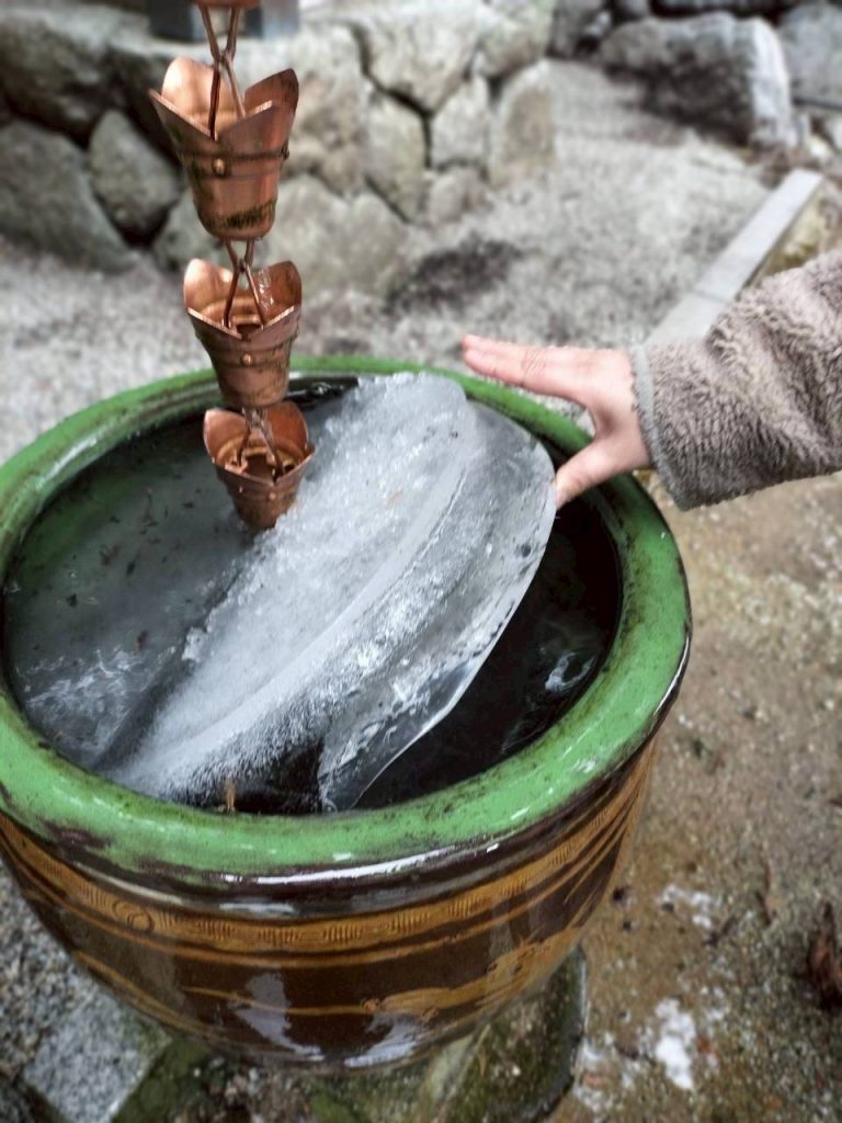 ちなみに、寒さの証明ではないですが、水がめの中は分厚い氷におおわれていました~!!
