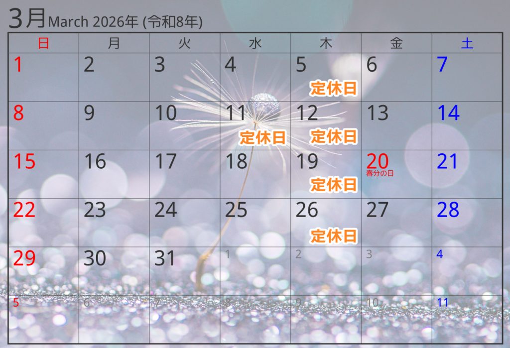 ご予約・ご来店の前にさくらどろっぷの営業カレンダーを